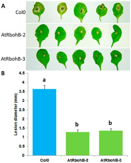 - Torres, M.A.; Dangl, J.L.; Jones, J.D.G. Arabidopsis gp91phox homologues Atrbohd and Atrbohf are required for accumulation of reactive oxygen intermediates in the plant defense response. Proc. Natl. Acad. Sci. USA 2002, 99, 517–522. [Google Scholar] [CrossRef]