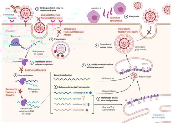 This rapid spread of COVID-19 has generated intense research interest to find a cure or a vaccine. However, there are no Food and Drug Administration (FDA)-approved drugs for the treatment of COVID-19, although remdesivir, an investigational antiviral drug, is available through an FDA emergency use authorization []. Several medicines with antiviral or immunomodulatory mechanisms have been recommended as potential investigational therapies, many of which are currently being studied in clinical trials. To date, therapies with proven benefit in certain groups include remdesivir, dexamethasone and convalescent plasma [,,]. This review describes the structure of SARS-CoV-2, its molecular and immune pathogenesis and summarizes current knowledge about the potential mechanisms for off-label agents widely used to treat COVID-19.