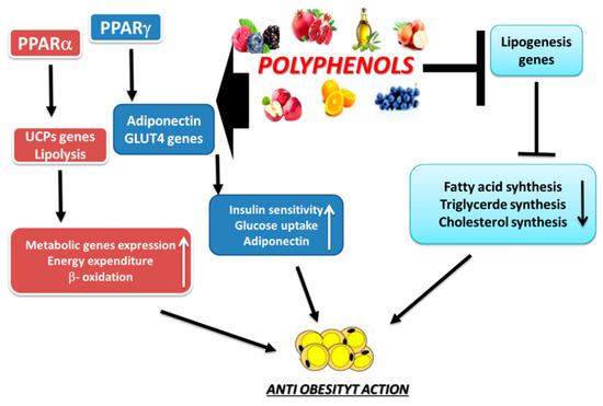 Since polyphenols are extensively modified, and the forms appearing in the blood and tissues are usually different from the forms found in plants; thus, greater attention should be focused on exploring the potential biological activity of polyphenol metabolites, as well as deepening the interaction with the microbiome. In understanding bioavailability of polyphenols, the differences between animal models and human should be taken into account. In order to verify the anti-obesity benefits of polyphenols in in vivo conditions, there is still a lot of scientific research to be done, and well-designed and adequately powered human studies, that undoubtedly verify health-promoting activity of polyphenols in in vivo conditions, are necessary.