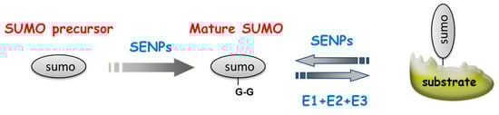 - Hickey, C.M.; Wilson, N.R.; Hochstrasser, M. Function and regulation of SUMO proteases. Nat. Rev. Mol. Cell Biol. 2012, 13, 755–766. [Google Scholar] [CrossRef]