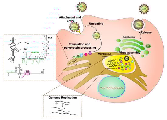 - Bartenschlager, R.; Cosset, F.-L.; Lohmann, V. Hepatitis C virus replication cycle. J. Hepatol. 2010, 53, 583–585. [Google Scholar] [CrossRef]
