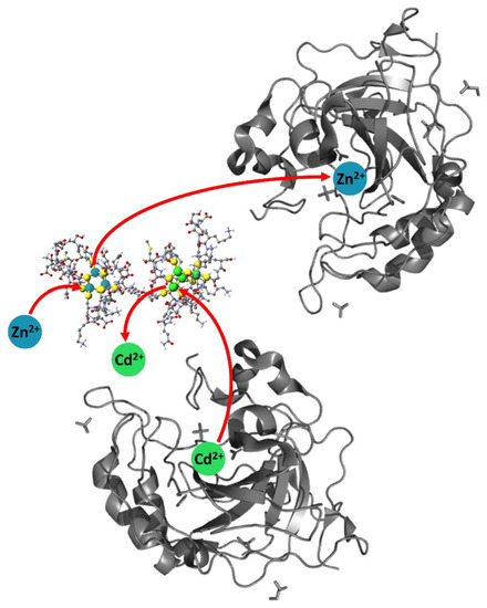 - Pinter, T.B.; Stillman, M.J. Kinetics of zinc and cadmium exchanges between metallothionein and carbonic anhydrase. Biochemistry 2015, 54, 6284–6293. [Google Scholar]