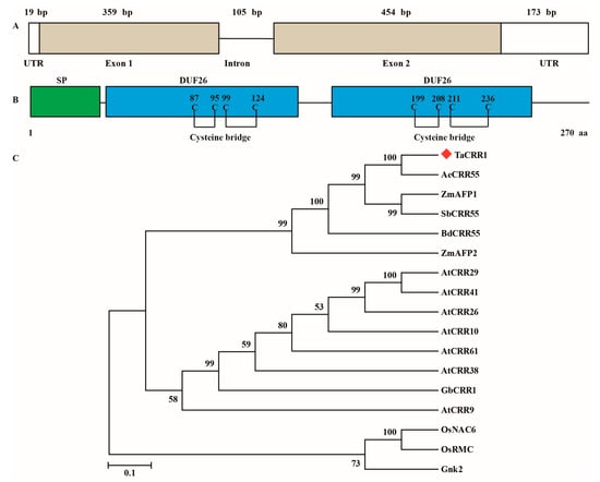 2.2. Sequence and Phylogenetic Analyses of TaCRR1
