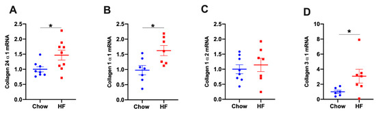 2.2. Col24α1 mRNA Was Increased in Skeletal Muscle of HF-Fed Mice