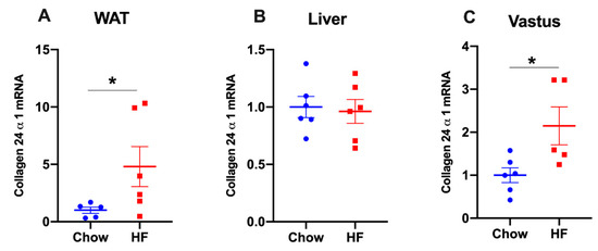 2.3. Col24α1 mRNA Was Increased in White Adipose Tissue, but Not in Liver of HF-Fed Mice