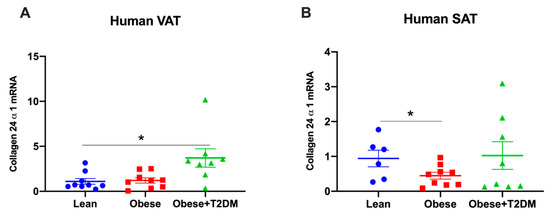 2.4. Col24α1 mRNA Was Increased in Visceral Adipose Tissue of Obese Diabetic Human Subjects
