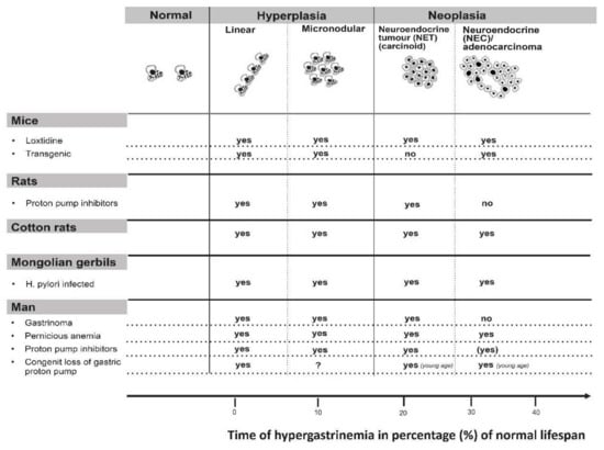 Every condition with long-term hypergastrinemia leads to ECL cell tumors in all species examined. Reproduced with permission from: Waldum et al. Expert Opinion. Drug Safety 2002, 1, 29–38 [].