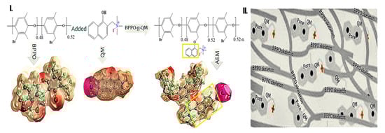 (I–III) Schematic of BPPO-g-QM membrane grafting through the TIPS technique and membrane conformation.