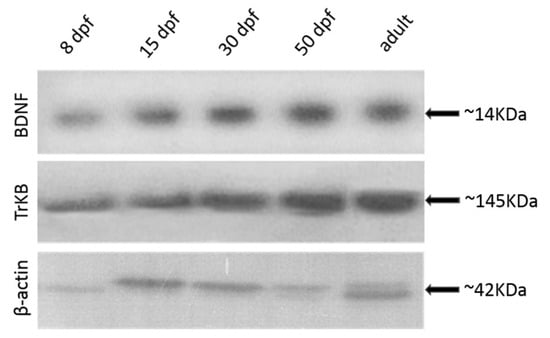 - De Felice, E.; Porreca, I.; Alleva, E.; De Girolamo, P.; Ambrosino, C.; Ciriaco, E.; Germanà, A.; Sordino, P. Localization of BDNF expression in the developing brain of zebrafish. J. Anat. 2014, 224, 564–574. [Google Scholar] [CrossRef]
