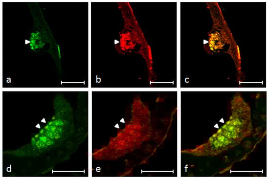 - Germana, A.; Abbate, F.; González-Martínez, T.; del Valle, M.; de Carlos, F.; Germanà, G.; Vega, J. S100 protein is a useful and specific marker for hair cells of the lateral line system in postembryonic zebrafish. Neurosci. Lett. 2004, 365, 186–189. [Google Scholar] [CrossRef] [PubMed]