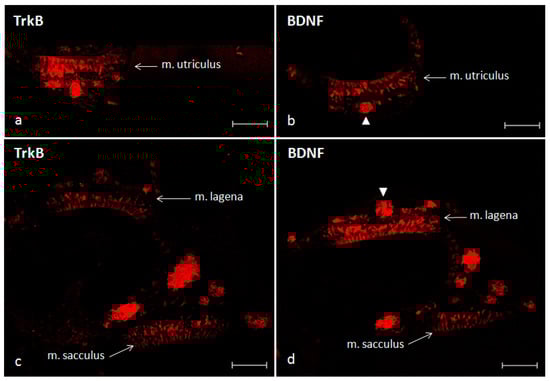 - Don, D.M.; Newman, A.N.; Micevych, P.E.; Popper, P. Expression of brain-derived neurotrophic factor and its receptor mRNA in the vestibuloauditory system of the bullfrog. Hear. Res. 1997, 114, 10–20. [Google Scholar] [CrossRef]
