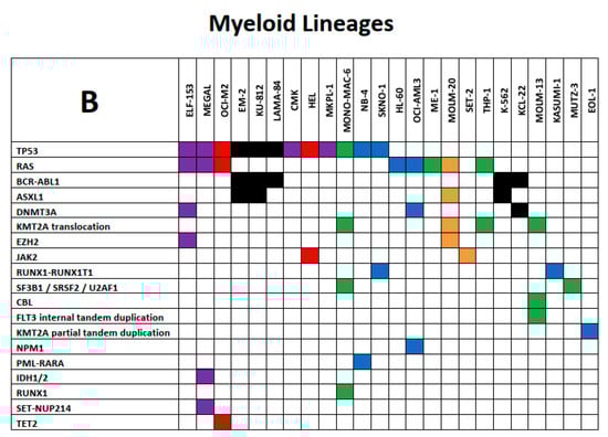 - Drexler, H.G.; MacLeod, R.A.F. Leukemia-lymphoma cell lines as model systems for hematopoietic research. Ann. Med. 2003, 35, 404–412. [Google Scholar] [CrossRef]