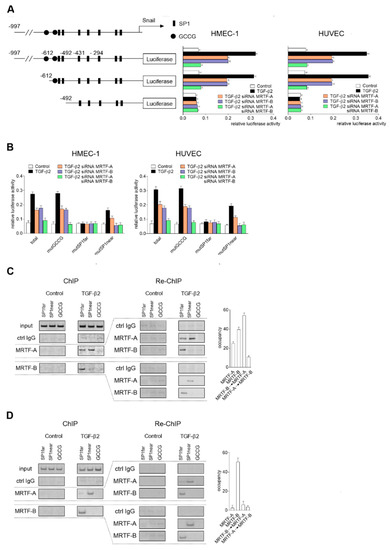 2.5. Direct Cooperativity of MRTF-A and MRTF-B Is Required for Regulation of Snail Promoter Activity in EndMT
