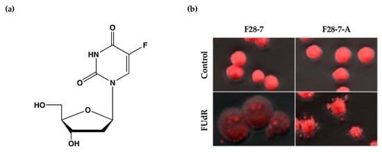 (a) Chemical structure of anticancer drug floxuridine (5-Fluoro-2′-deoxyuridine, FUdR). (b) Cell death morphological changes induced by FUdR in F28-7 and F28-7-A cell lines. FUdR induces necrosis in F28-7 and apoptosis in F28-7-A. Control, no treatment; FUdR, cells were treated with 1 μM FUdR for 21 h. Figure 1b modified from Ref. [9].
