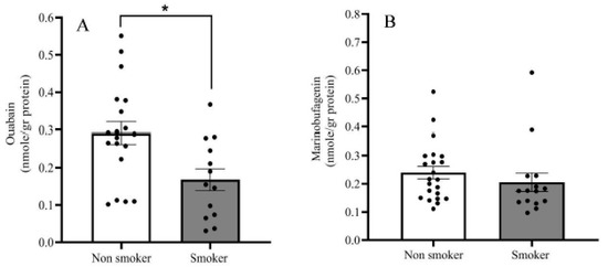 - Miura, H.; Toyama, K.; Pratt, P.F.; Gutterman, D.D. Cigarette smoking impairs Na+-K+-ATPase activity in the human coronary microcirculation. Am. J. Physiol. Heart Circ. Physiol. 2011, 300, H109–H117. [Google Scholar] [CrossRef]