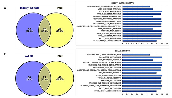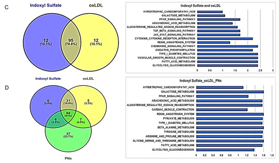 The following are available online at https://www.mdpi.com/1422-0067/21/16/5923/s1. Table S1: Summary of enriched KEGG pathways under experimental renal failure in PNx mice. Table S2: Summary of enriched KEGG pathways in 3T3L1 adipocytes treated with oxLDL. Table S3: Summary of enriched KEGG pathways in 3T3L1 adipocytes treated with IS. Figure S1: Functional enrichment analyses using Kyoto Encyclopedia of Genes and Genomes (KEGG) pathways in PNx mice model. Figure S2: KEGG pathway analysis in adipose tissue of PNx mice model with alteration of key genes associated with uremic cardiomyopathy. Figure S3: In vivo phenotypical features characterized with ORA and the associated heat maps of GSEA scores. Figure S4: Functional enrichment analyses using Kyoto Encyclopedia of Genes and Genomes (KEGG) pathways in oxLDL treated murine adipocytes with alteration of key genes associated with oxidative stress. Figure S5: Functional enrichment analyses using Kyoto Encyclopedia of Genes and Genomes (KEGG) pathways in IS treated murine adipocytes with alteration of key genes associated with oxidative stress. Figure S6: Heat maps of gene expression associated with enriched KEGG pathways by OxLDL and IS using GSEA. Figure S7: Network diagram associated with the analysis of genes in STRING database and the heat maps of gene expression associated KEGG pathways altered in vitro. Figure S8: Scale independence and mean connectivity as a function of soft threshold in in vitro datasets.