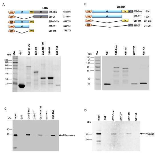 Supplementary materials can be found at https://www.mdpi.com/1422-0067/21/17/5944/s1. Figure S1. In vitro synthesis of 35S-labeled emerin and β-DG using a coupled transcription/translation system. Figure S2. Docking of full-length emerin and β-DG protein structures.