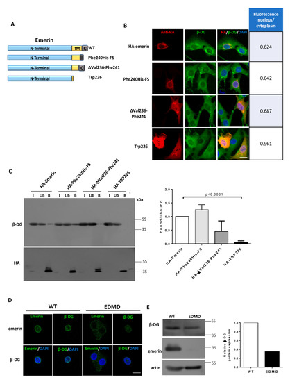 2.1. The Interaction between β-DG and Emerin Requires Their Respective Transmembrane Domains