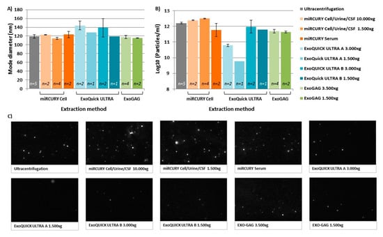 - Rekker, K.; Saare, M.; Roost, A.M.; Kubo, A.-L.; Zarovni, N.; Chiesi, A.; Salumets, A.; Peters, M. Comparison of serum exosome isolation methods for microRNA profiling. Clin. Biochem. 2014, 47, 135–138. [Google Scholar] [CrossRef]