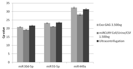 | miRCURY cell/urine/CSF 10,000× g (n = 2) | 3.65 ± 3.04 | 1.17 ± 0.01 | 0.10 ± 0.01 |