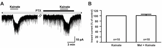 2.5. Melatonin Effect on the Kainate Response Was Independent of Its Own Receptors but PTX Sensitive