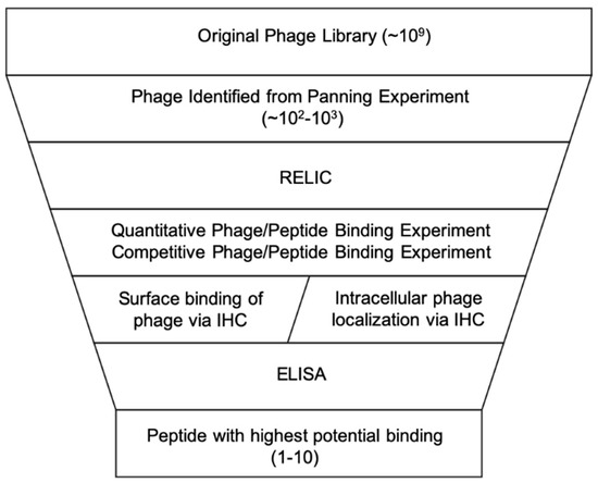 After multiple rounds of biopanning and amplification, the number of potential peptide sequences will be reduced from ~109 to 102–103. The remaining candidates must be further analyzed to determine the top candidates based on binding strength and selectivity for the desired target (Figure 3).