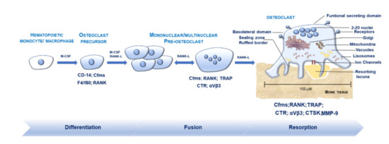 2.2. Osteoclastogenesis and Osteoclastic Bone Resorption