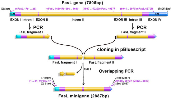 Supplementary materials can be found at https://www.mdpi.com/1422-0067/21/17/6011/s1. Table S1: Primers used for cloning, selection of the recombinants, sequencing, and RT-PCR, Figure S1: FasL minigene fragments cloning in pBKS, Figure S2: Selection of recombinant plasmids by PCR.