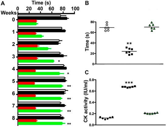 4.14. Physical Exercise Tests (Rotarod Test and Four Limbs Hanging Test)