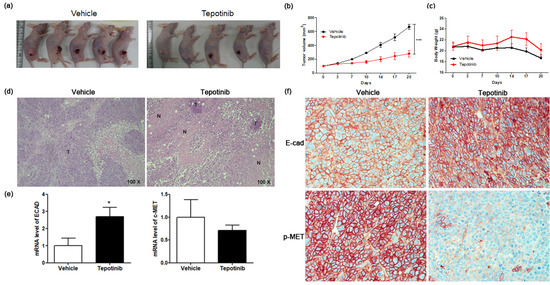 2.5. Tepotinib Inhibits the Growth of Subcutaneous Xenograft Tumors in Nude Mice