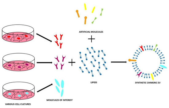 At this point, it is clear that the functionalization of EVs with ligands and other molecules can boost up their stability in blood circulation, have the capability of localizing the target site, and can increase their intracellular delivery efficiency [111]. The main drawback of EV engineering is the introduction of the risks of altering the orientation of membrane proteins, which may compromise their biological functionalities or even induce immunogenicity [59]. Further risks of EV engineering are associated with the hiding of these proteins or to the damage or disruption the EV membrane [101]. For this reason, developing bioinspired, synthetic, and chimeric EV-like alternatives is increasingly promising to broaden the therapeutic application of these natural biovesicles [111].