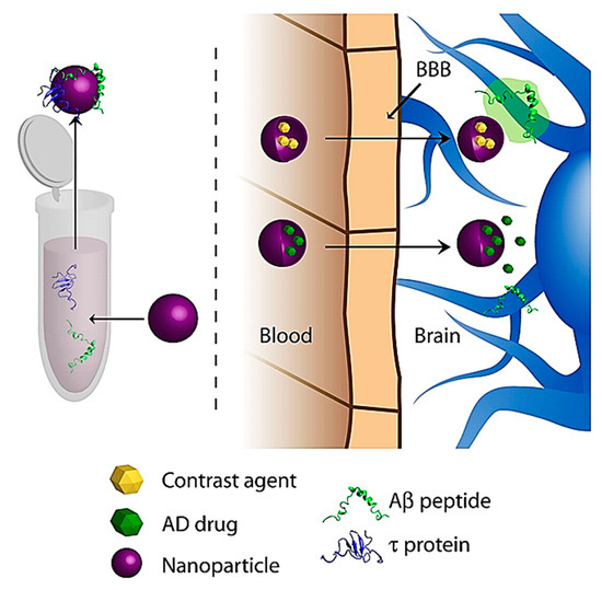 - Brambilla, D.; Le Droumaguet, B.; Nicolas, J.; Hashemi, S.H.; Wu, L.P.; Moghimi, S.M.; Couvreur, P.; Andrieux, K. Nanotechnologies for Alzheimer’s disease: Diagnosis, therapy, and safety issues. Nanomedicine 2011, 7, 521–540. [Google Scholar] [CrossRef]