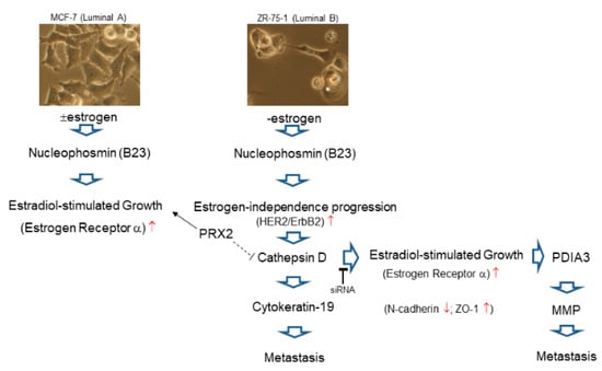 - Rochefort, H. Estrogens, cathepsin D and metastasis in cancers of the breast and ovary: Invasion or proliferation? C. R. Seances Soc. Biol. Fil. 1998, 192, 241–251. [Google Scholar] [PubMed]