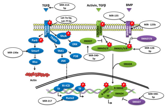 2.2. MiRNAs Involved in BMSCs Regulation through the TGF-β/BMP Pathway