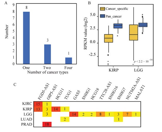 - Wei, Y.; Dong, S.; Zhu, Y.; Zhao, Y.; Wu, C.; Zhu, Y.; Li, K.; Xu, Y. DNA co-methylation analysis of lincRNAs across nine cancer types reveals novel potential epigenetic biomarkers in cancer. Epigenomics 2019, 11, 1177–1190. [Google Scholar] [CrossRef]