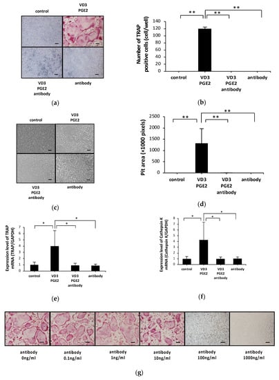 2.1. Anti-c-fms Antibodies Inhibit Osteoclast Formation and Bone Resorption in an Osteoblast–Osteoclast Co-Culture System