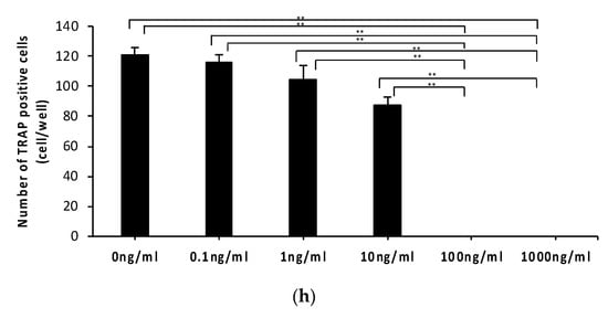 - Azuma, Y.; Kaji, K.; Katogi, R.; Takeshita, S.; Kudo, A. Tumor necrosis factor-alpha induces differentiation of and bone resorption by osteoclasts. J. Biol. Chem. 2000, 275, 4858–4864. [Google Scholar] [CrossRef] [PubMed]