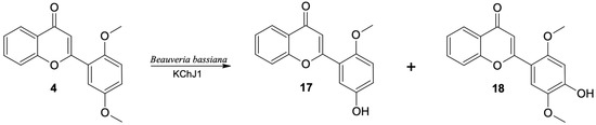 Biotransformation of 2′5′-dimethoxyflavone (4) by I. farinosa KCh KW1.1 and B. bassiana KCh J1.5 cultures.