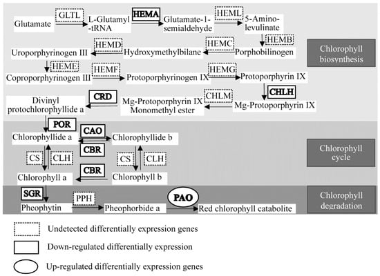 | CIL0946S0047 | PREDICTED: pheophorbide a oxygenase, chloroplastic-like | PAO | 1.48825352 | 2.60 × 10−58 | up |