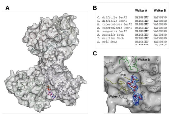 - Sharma, V.; Arockiasamy, A.; Ronning, D.R.; Savva, C.G.; Holzenburg, A.; Braunstein, M.; Jacobs, W.R., Jr.; Sacchettini, J.C. Crystal structure of Mycobacterium tuberculosis SecA, a preprotein translocating ATPase. Proc. Natl. Acad. Sci. USA 2003, 100, 2243–2248. [Google Scholar] [CrossRef]
