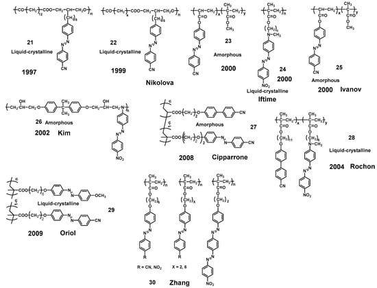 The chemical structures of achiral Azo-polymers 21, 22, 23, 24, 25, 26, 27, 28, 29 and 30.