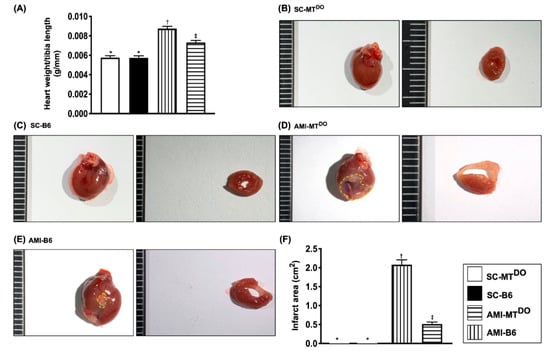 2.2. The Ratio of Heart Weight to Tibial Length and the Anatomic Infarct Size by Day 60 after AMI Induction
