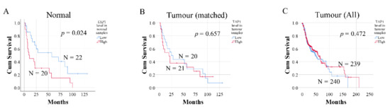 2.2. Expression of TAP1 in Tumor-Free Samples Confers Prognostic Information
