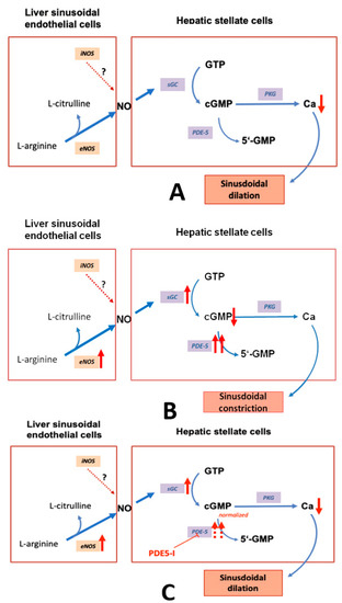 The interdependency of sCG and PDE-5 expression for regulation of sinusoidal tone in healthy and diseased liver might represent an interesting new approach (Figure 6A,B). However, further data are needed to confirm its validity.
