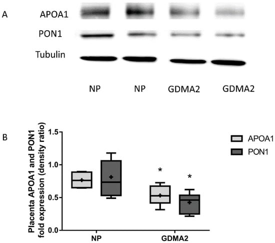 2.2. Changes Observed in GDMA2 HDL Composition, APOA1 and PON1 Expression in Maternal Blood