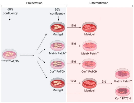 - The CardiopoieticAF and the hiPSCs were differentiated in a monolayer for 15 days, as previously described [2,25] either on one of the two dECMs or on the Matrigel® control;