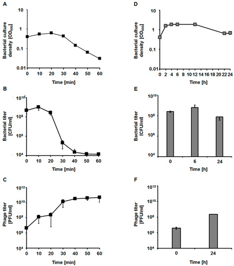 It is estimated that bacteriophages are the most abundant biological entities on Earth, as their number is estimated to be approximately 1031 virions [1,2]. They play a central role in the development of molecular biology and genetic engineering [2]. Bacteriophage λ, infecting Escherichia coli cells, may serve as an example of viruses that have been used as models in deciphering molecular mechanisms of basic biological processes, as well as to develop methods allowing genetic manipulations of a broad spectrum of applications [3]. On the other hand, the large number of existing bacteriophages implies their crucial ecological role; thus, characterization of phages that infect very different bacterial species is necessary to assess the effects of these viruses in the natural environment [4,5]. Moreover, phage therapy, i.e., the use of bacteriophages to treat bacterial infections, appears to be a new hope for the treatment of patients, especially in the era of the antibiotic resistance crisis [6]. Another medical aspect of phages is the phenomenon of phage-mediated bacterial virulence, as some phages code for toxins that determine the pathogenicity of various bacterial species [7]. Finally, although studies on phages have facilitated the development of sophisticated genetic engineering tools, bacteriophages are also dangerous factors that can destroy biotechnological production if the infecting bacteria synthesize desirable compounds in bioreactors [8,9,10].