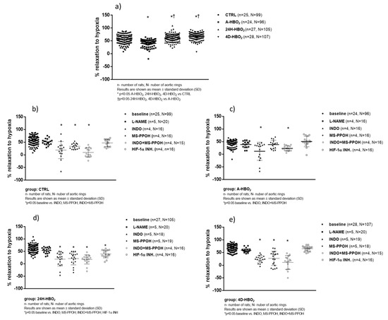 - Mihaljević, Z.; Matic, A.; Stupin, A.; Rasic, L.; Jukic, I.; Drenjancevic-Peric, I. Acute Hyperbaric Oxygenation, Contrary to Intermittent Hyperbaric Oxygenation, Adversely Affects Vasorelaxation in Healthy Sprague-Dawley Rats due to Increased Oxidative Stress. Oxidative Med. Cell. Longev. 2018, 1–15. [Google Scholar] [CrossRef]