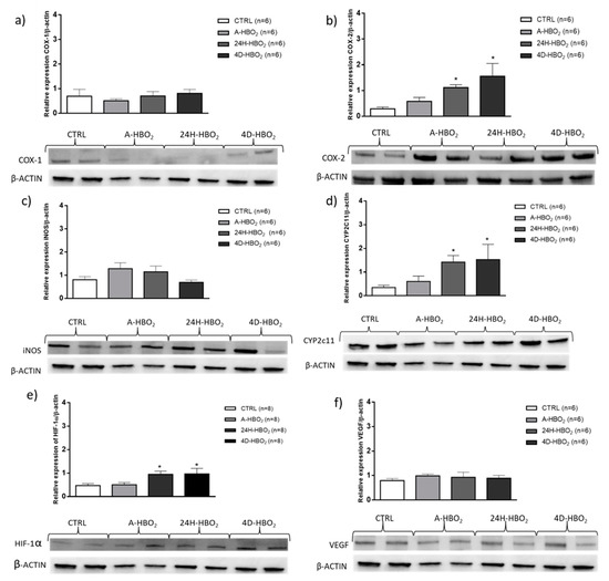 Mihaljević, Z.; Matić, A.; Stupin, A.; Frkanec, R.; Tavčar, B.; Kelava, V.; Tartaro Bujak, I.; Kolobarić, N.; Kibel, A.; Drenjančević, I. Arachidonic Acid Metabolites of CYP450 Enzymes and HIF-1α Modulate Endothelium-Dependent Vasorelaxation in Sprague-Dawley Rats under Acute and Intermittent Hyperbaric Oxygenation. Int. J. Mol. Sci. 2020, 21, 6353. https://doi.org/10.3390/ijms21176353