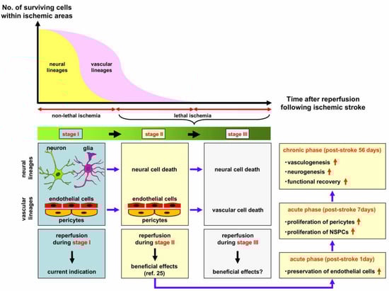 - Tanaka, Y.; Nakagomi, N.; Doe, N.; Nakano-Doi, A.; Sawano, T.; Takagi, T.; Matsuyama, T.; Yoshimura, S.; Nakagomi, T. Early Reperfusion Following Ischemic Stroke Provides Beneficial Effects, Even After Lethal Ischemia with Mature Neural Cell Death. Cells 2020, 9, 1374. [Google Scholar] [CrossRef]